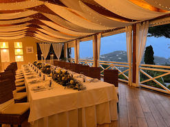 Exclusive use includes four different and versatile areas for your private use, a beautiful drinks terrace overlooking the Bay of Naples, a reception terrace overlooking Capri, Ischia, a beautiful terrace for your ceremony overlooking Capri and a dedicated party area where you can dance, complete with disco lights and sound system.